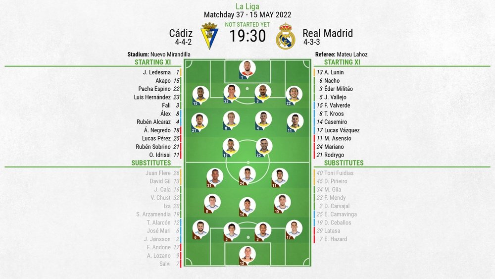 13Cadiz vs Real Madrid score prediction. Theyre 2 points above the drop-zone with 2 to play and could potentially seal safety on Sunday with a win over the champions but theyd also need a favour elsewhere for that to happen. RB - Jesus Vallejo - 310 - Struggled up against Idrissi on the flank.